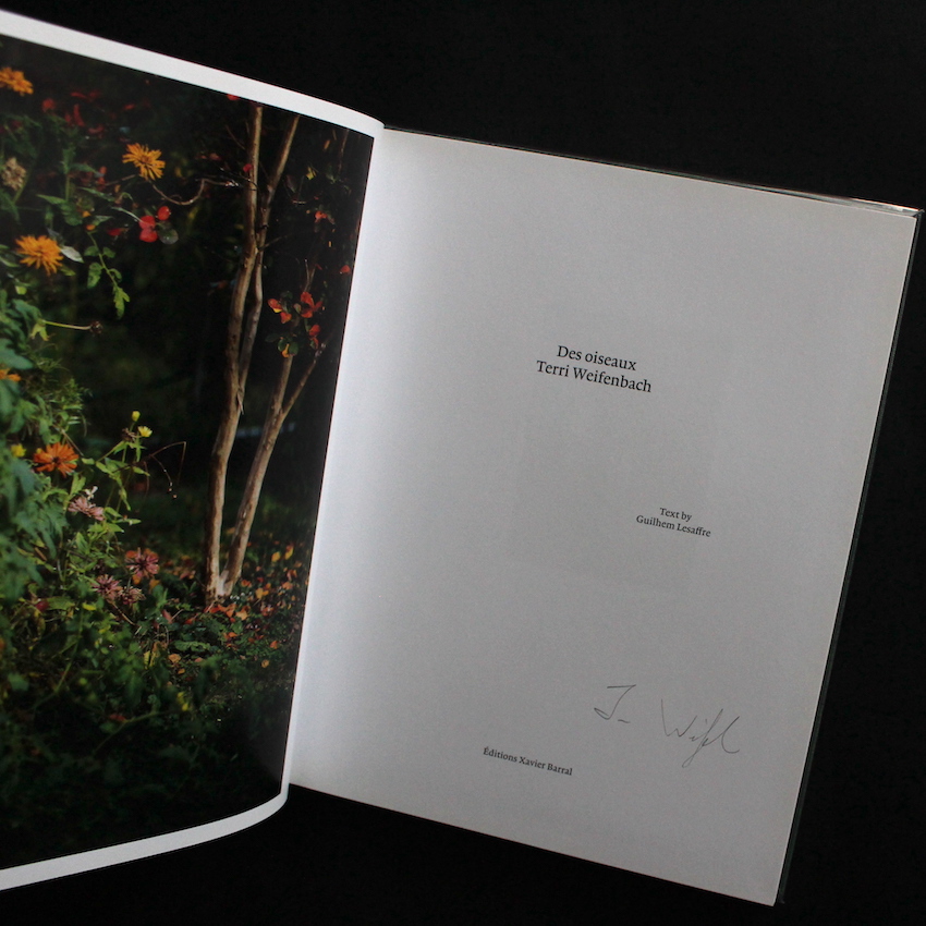 アメリカを代表する女性写真家テリ・ワイフェンバックによる写真集『Des Oiseaux(English Edition, Signed)』。1957年生まれ。メリーランド大学で絵画を学んだ後、70年代より写真制作を始め、自然風景をモチーフとして作品を制作してきたワイフェンバック。絵画のように鮮やかな色彩、ピンポイントで当てられたピントが特徴的で、これまでに出版された写真集は高い評価を得てきました。2014年には川内倫子との展示『Gift』が行われ、2017年にはIZU PHOTO MUSEUMにて自身初となる大規模個展「The May Sun」を開催するなど、日本でも人気の高い写真家です。本書は、フランスの出版社「Editions Xabier Barral」が社会の中の「鳥」をテーマにした写真集「Des oiseaux」シリーズからの1冊です。これまでにフランスの写真家、ベルナール・プロスやフィンランドの写真家、ペンティ・サマラッティ、そして日本の水谷吉法らも参加したシリーズで、ワイフェンバックは庭に巣を作るシジュウカラやスズメなどの可憐な鳥たちをはじめ、庭を彩る様々な花木をその独自のスタイルで写し出しています。写真家サイン入り。
