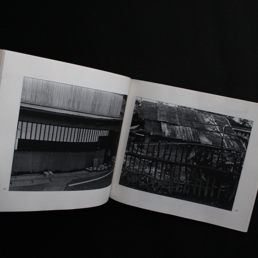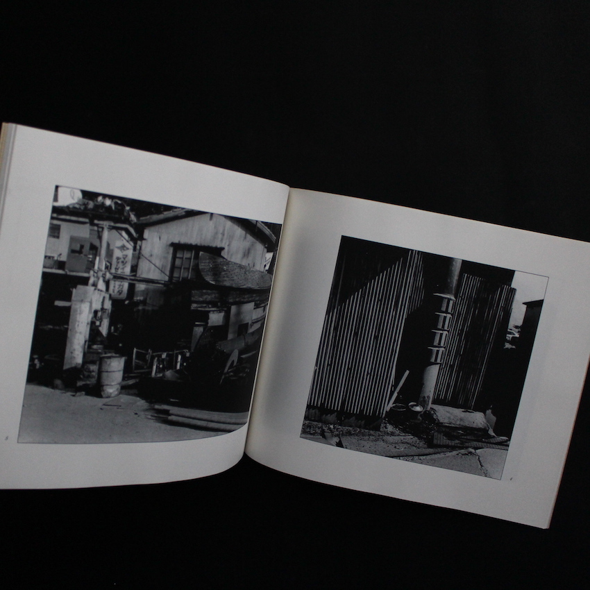 日本の写真家・谷道彦の写真集『トタン板のまち』。1933年香川県に生まれ、岡山を生活の拠点としながら、アサヒカメラやカメラ毎日等の各誌で作品を発表し、90年代以降ニコン・コニカミノルタなどのサロンで、個展を開催してきた谷道彦。2000年以降は東京での活動から離れ、地元岡山で同じアマチュア写真家で『時計の外の時間 / A Timeless Life(1994)』等を刊行している山上高人と共に、サークル活動を行なっています。これまでに『大多府の風』『わがまち玉野』など多数の写真集を刊行してきたものの、そのほとんどが商業販売を行っていないことから、残された作品集は大変貴重です。本書は3rd写真集にあたり「トタン」をモチーフにしたランドスケープで構成された一冊。ロッコール誌編集長であった玉田顕一郎にも絶賛されたという作品の数々は、素朴ながらも力強さに溢れ、簡易な体裁ながらもブラックの深いトーンが美しくプリントされています。深瀬昌久の名作『鴉 / Ravens』でもおなじみの長谷川明による編集が本書の魅力を一層引き立たせています。