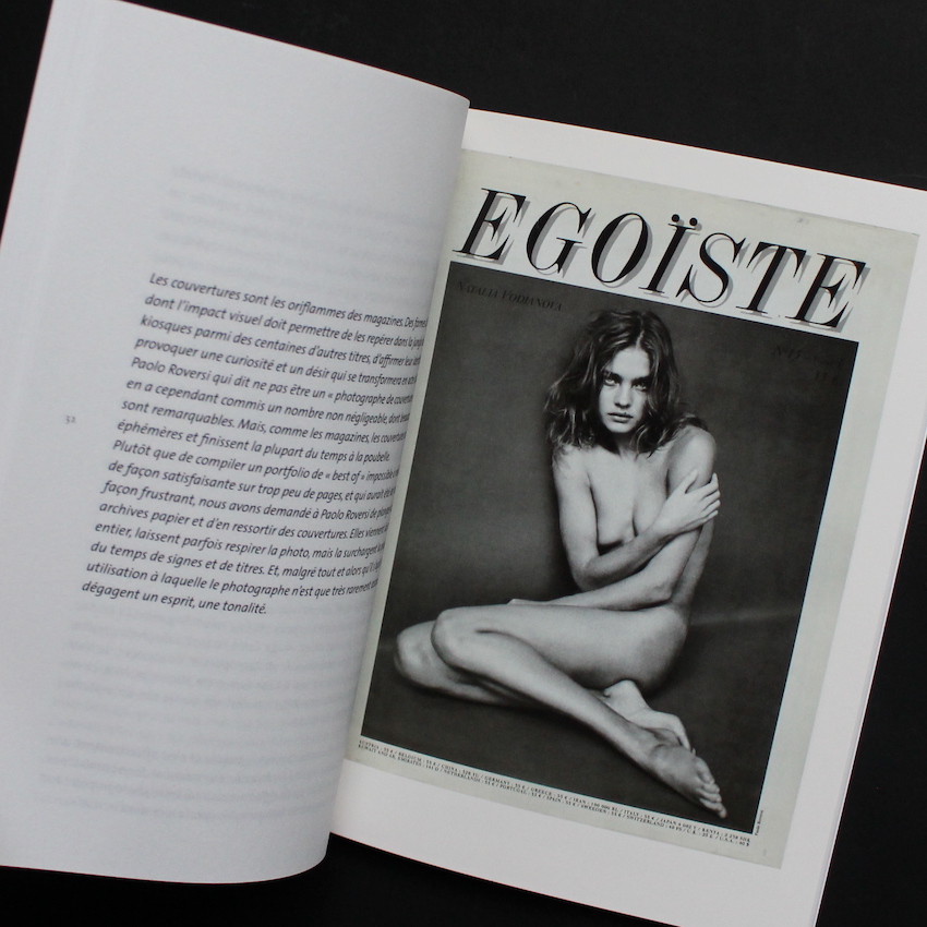 イタリア出身で現在はパリを拠点に活躍するパオロ・ロベルシの作品集『Paolo Roversi (Par) Christian Caujolle』。1947年イタリア・ラヴェンナ生まれのロベルシは、ティーンエイジャーの頃より写真に興味を持ち、地下室に暗室を設けて自身でプリントを勉強していたと言います。70年代前半より故郷で小さなスタジオをオープンしますが、そこでスイス出身の写真家で、当時は雑誌『Elle』のアートディレクターを担っていたピーター・ナップ(Peter Knapp)の誘いを受けて、パリに渡り、同誌のファッション写真を撮るようになります。以降はパリにとどまるとともに、錚々たるコレクション・ブランド、VogueやElleを始めとしたファッション誌での活躍は周知の通り。本書は、写真ジャーナリストで、マグナムに並ぶ写真家集団「Agence VU」の創設者の一人であるChristian Caujolleとの共著であり、両名が「写真」について語り合った貴重な記録集。但し、テキストはフランス語。収録図版は、ロベルシ撮影のファッション誌のカバーが30強です。単行本サイズの小ぶりな一冊です。