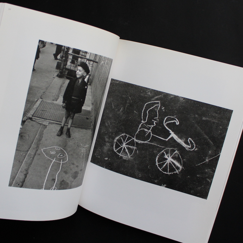 "In the Street" is a photo book by Helen Levitt, one of the few photographers who learned photography from Walker Evans and was recognized by Evans. Levitt studied under Evans mainly in the 1930s, and later worked for Time magazine, Fortune magazine, etc., and held a solo exhibition at MoMA in 1943. Born and raised in Brooklyn, her favorite subject is the streets of New York, especially the poor areas symbolized by Harlem. At the time, most photographers turned a blind eye to the areas and people, but her street snaps, which captured them with a warm and loving gaze, were compiled in a photo book titled "A Way of Seeing" in 1965 and have become a masterpiece that has been reprinted many times since. This book is a collection of works by Levitt, who continued to look at such streets, focusing on the "graffiti" left by children. It is a wonderful book full of love and messages that are similar to Brassai's masterpiece "Graffiti de Brassai".
