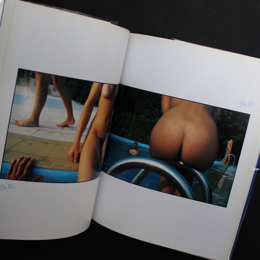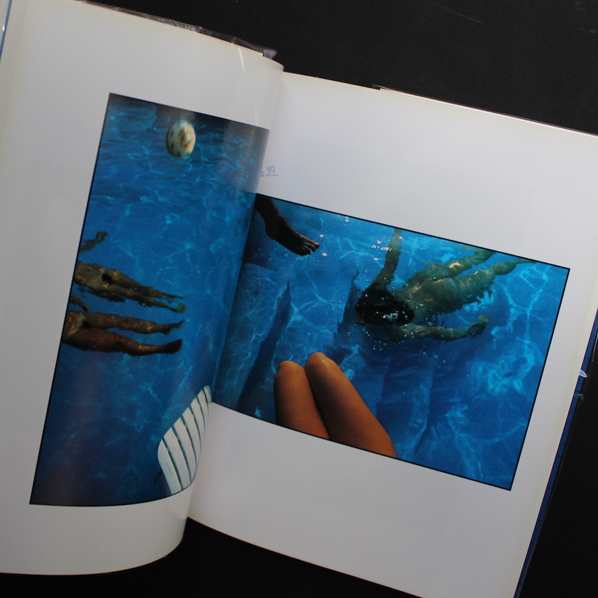 イタリアを代表する写真家のひとりであるフランコ・フォンタナの作品集『Blue』。イタリアのカラー写真のパイオニアと言えば、近年再評価が進み、数々の作品集が刊行されている「ルイジ・ギッリ」や「グイド・グイディ」が挙げられますが、忘れてはならないもう一人の写真家がこのフォンタナです。日本では、80年代にクローズアップのヌードやコマーシャル作品で注目されましたが、ギッリのようなある種「控えめ」で「地味」なスタイルではなく、原色カラーのコントラストやグラデーション、造形美溢れるランドスケープが有名です。本書は、その80年代に日本の流行通信から刊行された作品集で、プールの「ブルー色」を背景にした、ヌードなどが収録されています。帯欠。