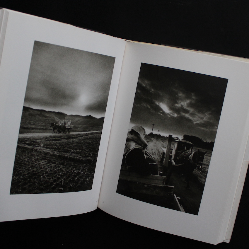日本の写真家・小島一郎の写真集『小島一郎写真集成』。青森県に生まれ、青森の風土を撮影し続けた伝説の写真家小島一郎。足かけ3年の従軍の後、1950年代初頭より、父の影響を受けて写真を撮り始め、1964年わずか39歳の若さでこの世を去るまで写真家として活動した期間はわずか10年ほど。終戦後東北最大の空襲を受け、廃墟と化した故郷青森の街を目にし、激しい虚脱感に襲われていた小島は、食糧買い出しのために訪れた「津軽野」で目にした美しい自然と黙々と働く農夫の姿に心を奪われ、自省を促され、そして生きる希望を見つけます。以降、4年にわたり撮影を続けた青森の風土写真は、報道写真の先駆者名取洋之助の目にとまり、1958年には東京で個展を開催そして1963年には生前唯一の作品集で、日本の写真史にその名を刻む屈指の傑作『津軽 <詩・文・写真集>』を刊行するに至ります。「人間の強さ、人間に妥協しない風景。。。そんなものを表現してみたい」「スナップよりも造形美でゆきたい」という強い情熱をもって捉え続けた美しき青森の風景と人々。200点強の作品が収録された貴重な回顧集。2009年刊行・第1刷。