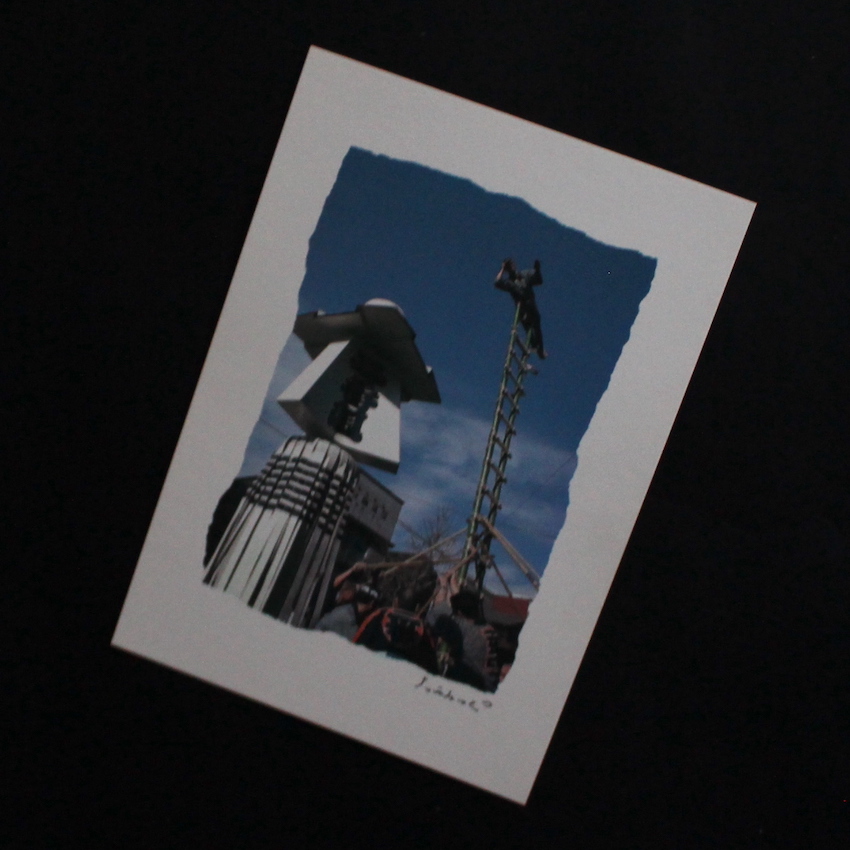 日本を代表する写真家のひとりである大西みつぐ(1952-)の作品集『深川 名残の町から 大西みつぐ』。一貫して、自身が暮らす東京の東側の町を、下町生活者の視線でカメラに収めてきた大西みつぐ。70年代には、カメラ毎日の「Album」シリーズで多くの作品が発表されていますが、当時は多くの実験的な作品も多数残していました。こちらは90年代に発売された「絵葉書」集。深川で撮影された路地、風景、祭りなどのカラー写真が11枚収録されています。高梨豊の『町』も想起させるような昭和感にあふれたイメージです。「まちがあるから生きていける。町はいつでもそこにある(大西みつぐ)」。